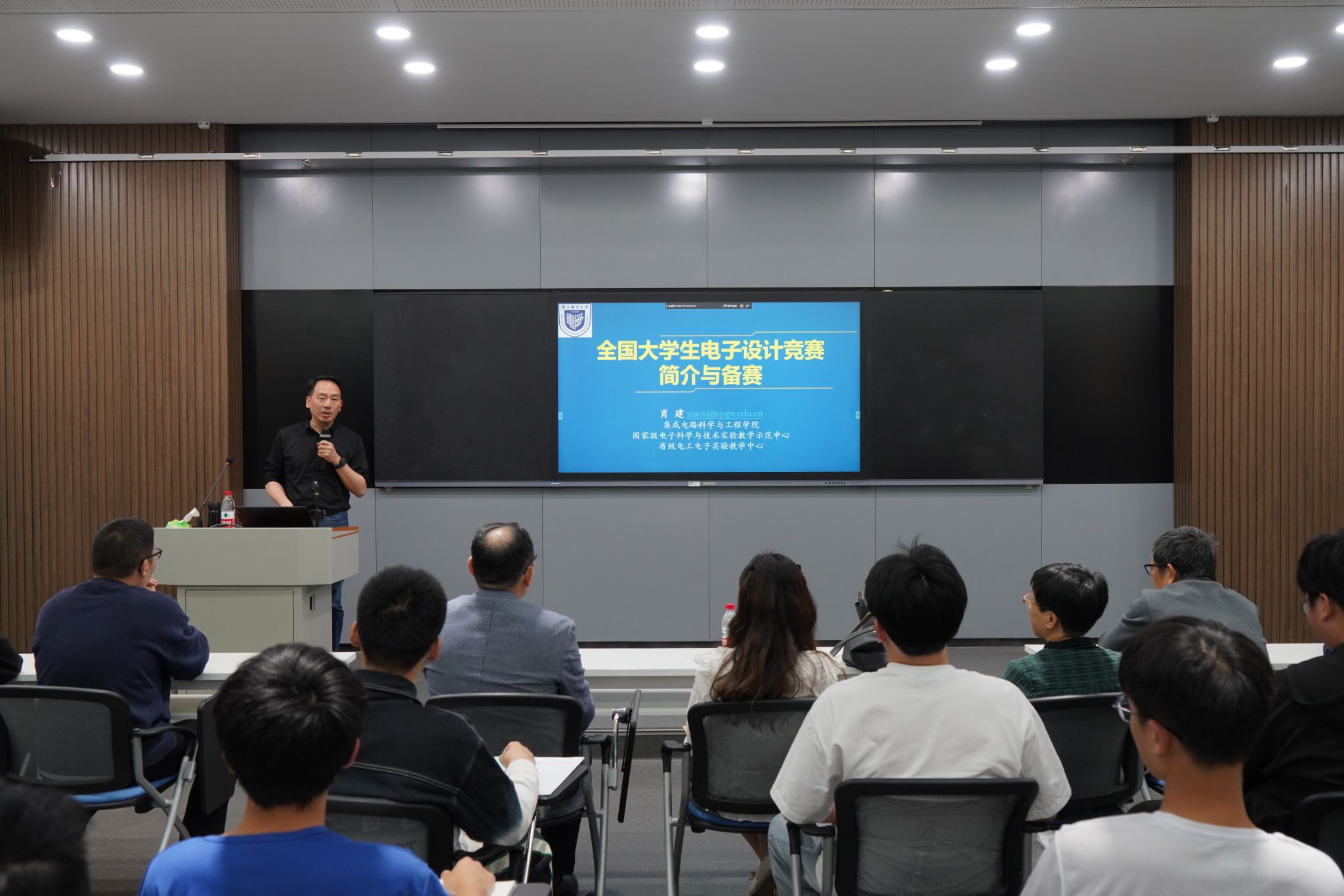 肖建教授以全国大学生电子设计大赛为切入口,带领现场师生探讨如何培养大学生的创新能力和创新思维,提高大学生在专业能力建设方面的兴趣。他介绍了该赛事的具体情况,并分享了他的团队搭建及培训体系建设情况,鼓励同学们参赛不能脱离专业学习,参赛要建立在兴趣和专业能力提升上。同时指导老师们要提供针对性技术指导,帮助学生调整比赛心态。