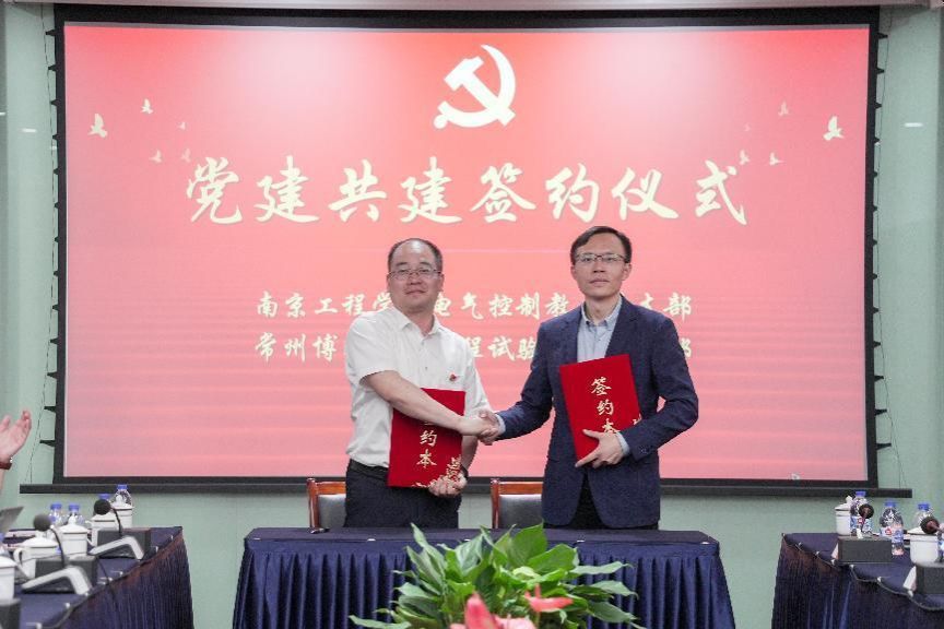 芮新红书记介绍了电力凯发的党建概况,领学了学习贯彻习近平新时代中国特色社会主义思想主题教育工作会议精神并重点谈了学习体会。工程试验支持党支部书记周万喜作为电气工程及其自动化专业2016届毕业生,表达了见到母校老师的激动心情,并介绍了工程试验支持党支部的有关情况。活动现场电力凯发电气控制教工党支部书记王正齐和工程试验支持党支部书记周万喜签署了《党建结对共建协议书》。