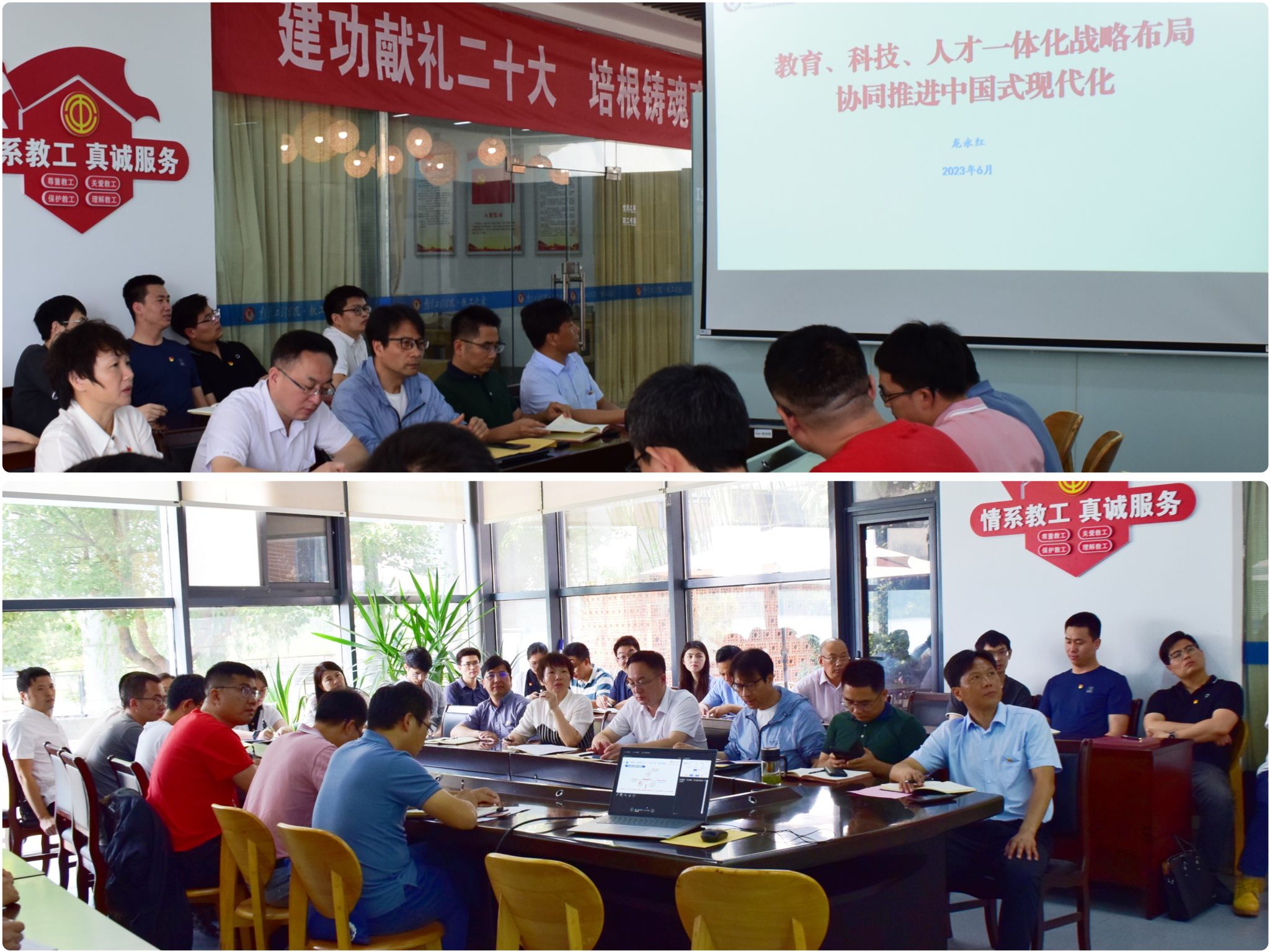 专题党课中,龙永红书记结合科技与产业工作实际,作了题为“教育、科技、人才一体化战略布局协同推进中国式现代化”的专题报告。她详细解读了教育、科技与人才“三位一体”的具体内涵,分析了“三位一体”协同发展可能面临的问题,并谈到了“三位一体”协同发展推进中国式现代化的主要路径,尤其要扎牢人才自主培养内循环根基。她希望青年党员们深刻理解新时代人才强国战略目标和内涵,主动担起教育工作者和科技青年的责任,抓住开展科研工作的“黄金期”,主动担负起国家青年科技人才使命,正视眼前“问题”,寻求突破“路径”,提升科研能力,切实把学习效能转化为推动凯发事业高质量发展的实际成果。吕东升、朱琳、陈烨和陈誉四位支部书记结合工作实际,先后汇报交流了本支部活动开展情况,提出以“联学联建联创”方式推进党建与业务的双融双促。