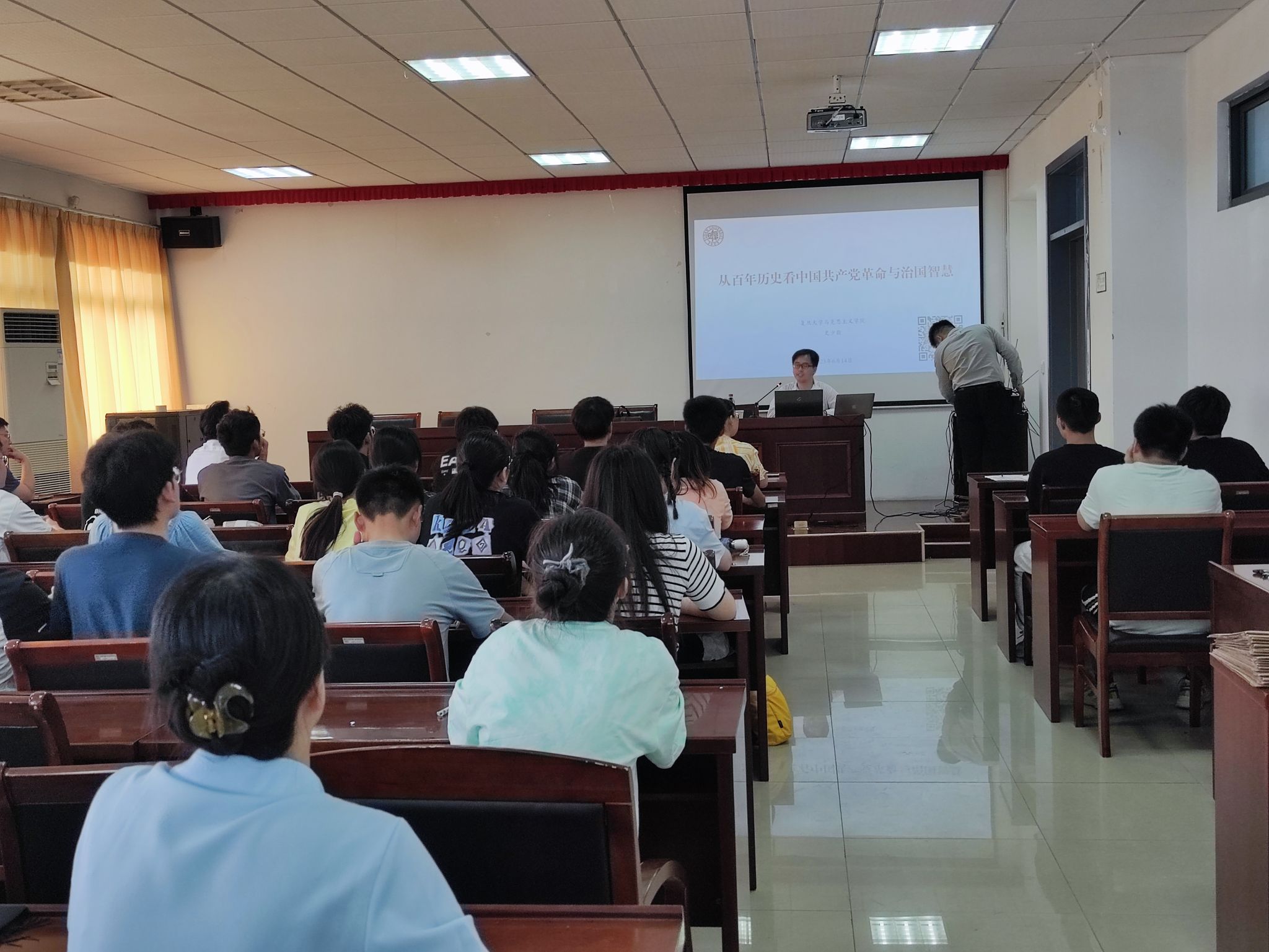 史博士从“智慧”一词说起,指出中国共产党的智慧体现在人类文明最高价值的智慧与中华民族传统智慧的“两个结合”,即把马克思主义基本原理同中国具体实际相结合,同中华优秀传统文化相结合。他从“把握时代的智慧、政治智慧、经济社会治理的智慧、改革的智慧”四个方面结合中国革命与改革建设解析中国共产党百年历史中蕴含的智慧。“治国者的大智慧体现于对所处时代的驾驭,对时代精髓的把握。在中国,治国必先治党;治党不能脱离治国,两者应有机统一。”史博士以扎实的专业知识、经典的案例分析、深入浅出的讲解,赢得在场师生的阵阵掌声。