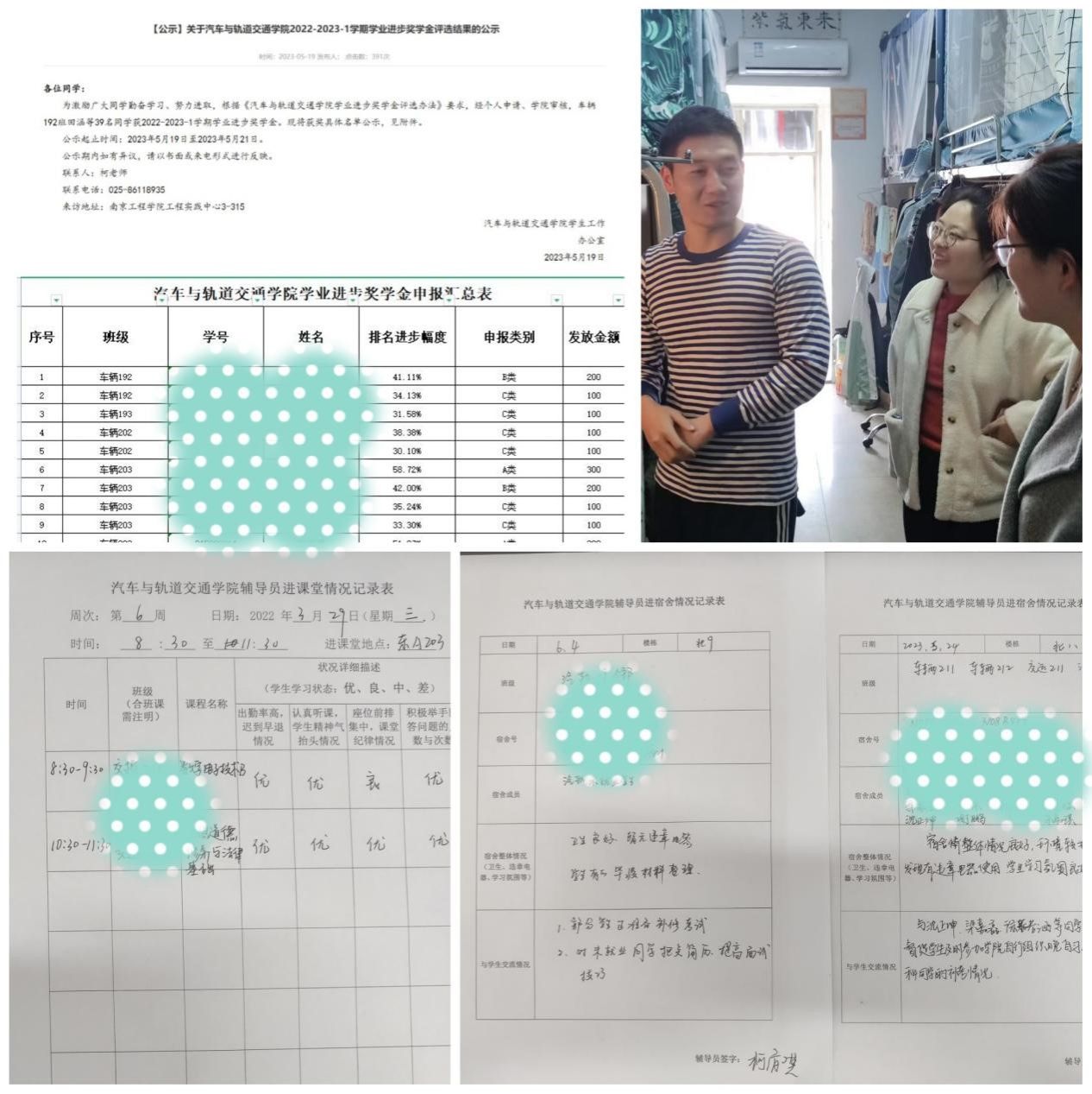 为了引导各年级持续开展优良学业建设,汽轨学院结合工作实际,不断健全学风建设机制,提高学风建设水平。为表彰学业先进个人,鼓励同学们“比学赶超”不断提高学习成绩,学院开展学业进步奖学金评选活动。经过个人申报与学院审核,车辆192班田涵等39名同学因学业进步幅度超过30%以上获评学业进步奖学金。学院发挥辅导员、班主任的学业监督作用,分年级开展“进课堂,进宿舍”周报记录,通过辅导员走进学生课堂与宿舍,深入了解课程教学与学生学习情况,帮助学院及时掌握学生学习状态,发现学业问题,为后续针对性开展学业帮扶提供依据。对于学业能力差、积欠学分多的困难学生,学院积极完善家校沟通机制,实现班主任与学生家长全面沟通,保证学生教育管理“无死角”,通过家校共同努力,帮助困难学生早日解决学业问题。