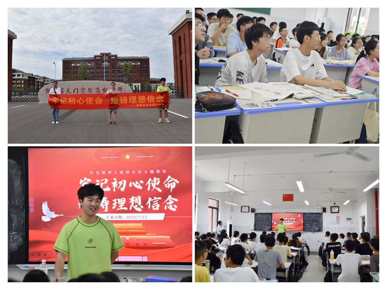 进校园,牢记初心铸信仰。“到祖国最需要的地方去……请党放心,强国有我!”为引导青年学子传承红色文化,赓续红色血脉,汲取丰厚的党史滋养,实践队成员前往湖北天门高级中学进行党史宣讲。从一叶红舟到巍巍巨轮,从乱世烽火到万众一心,从一代宗师陈独秀到铁肩担道义的李大钊,实践团成员为同学们讲述中国共产党百年沧桑巨变,赤心历久弥坚,深化听党话、感党恩、跟党走的爱国情怀,引导同学们向党的历史学习、向革命先辈学习、向英雄榜样学习,立志做有理想、敢担当、能吃苦、肯奋斗的新时代有为青年。