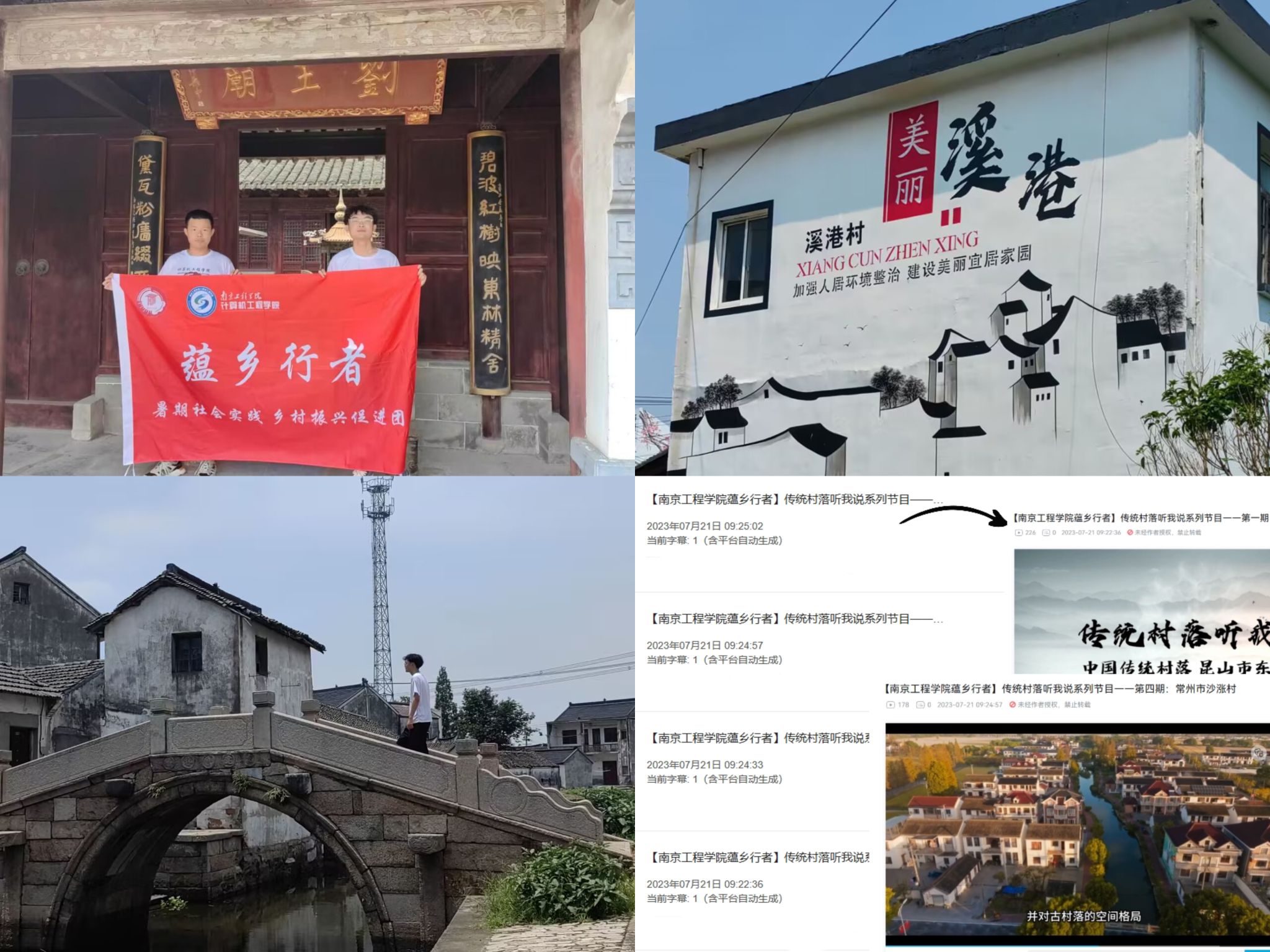 探寻江南水韵,制作宣传视频。“千年乡脚,韵味溪港。”为了解苏州市吴江区溪港村蕴含的江南水乡文化底蕴,团队成员通过无人机航拍、定点摄影、调查问卷、半结构访谈等方式对溪港村东林桥、刘猛将军庙和李八爷旧宅等村落遗产展开调研,深入考察溪港村打造依水而起、靠水而荣的“依水临田型江南村落”的历史和现状。“我们在发展过程中严格落实有关传统乡土文化传承、保护和发展的各项政策措施,并以实际行动完善保护当地物质文化遗产。”村委会工作人员在采访中介绍道,溪港村以历史文化赋能乡村振兴,使整个村落焕发生机。为提高传统村落的知名度,团队成员充分发挥新媒体平台宣传作用,精心制作“传统村落听我说”系列原创视频在哔哩哔哩、小红书等新媒体平台上进行投放,获得广泛好评。“传统村落是我国宝贵的文化遗产,蕴含着丰富的历史文化底蕴,被誉为‘民间文化生态的博物馆’‘乡村历史文化的活化石’,让我们一起来保护好传统村落吧!”大数据221班刘浩化身主持人在视频节目中介绍道。