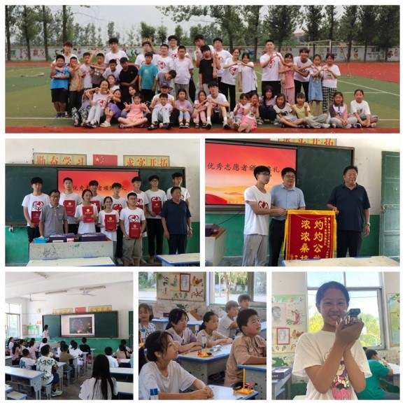 实践团队结合小学生们的需求,在辅导学生作业的基础上,还精心设计了“五色”教学课程——“向阳红”“码上绿”“魅力粉”“梦之蓝”“未来紫”,涵盖爱国主义教育、安全教育、美育教育、科技启蒙、传统文化传承等方面,受到了小朋友、学生家长,地方村、镇相关部门的一致好评。在“梦之蓝”科教课堂上,团队成员为小朋友们普及了“行星运转规律、能量转换形式”等科学知识,并指导他们亲手制作太阳能飞机、太空仪等手工作品,充分激发孩子们的科创思维和锻炼他们的动手能力;支教期间正值“七一”建党节,“向阳红”爱国主义教育课上,团队成员精心准备,带领孩子们重走长征路、重温“半条被子”的故事,鼓励大家向优秀的共产党员看齐;美育课上,团队成员还和孩子们合唱《永远的紫荆花》,以纪念香港回归祖国26周年,让爱国情怀在每一个孩子心中生根发芽。“我们学到了太阳能的应用、闪电的生成等科学知识,了解到了祖国的强大需要我们每一个人的努力和奋斗,感谢哥哥姐姐的陪伴和教导,希望哥哥姐姐们每个暑假都能和我们一起学习。”王沟镇中心小学四年级的常梓萱同学在接受当地丰县融媒体采访时说道。