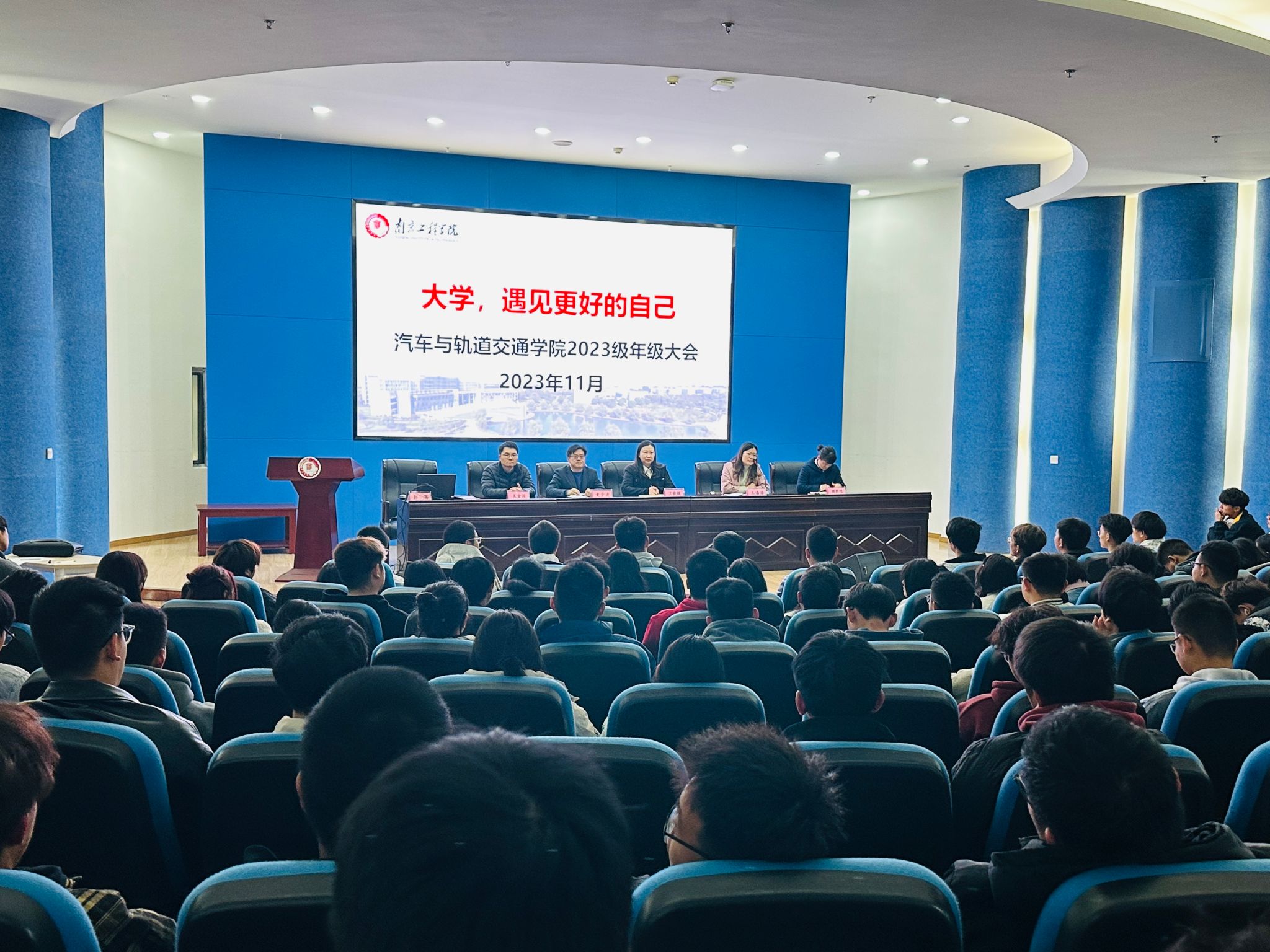 11月15日,汽车与轨道交通学院在图书馆学术报告厅举办青春故事分享会暨2023级新生年级大会。优秀校友代表、南京智禹航模技术有限公司总经理谭家兴,天印?泠风车队学生骨干杨骏杰担任主讲人。学院党委书记王薇薇、党委副书记王潘潘、副院长文少波、教研室主任代表、年级辅导员和全体2023级学生共同参加了本次活动。