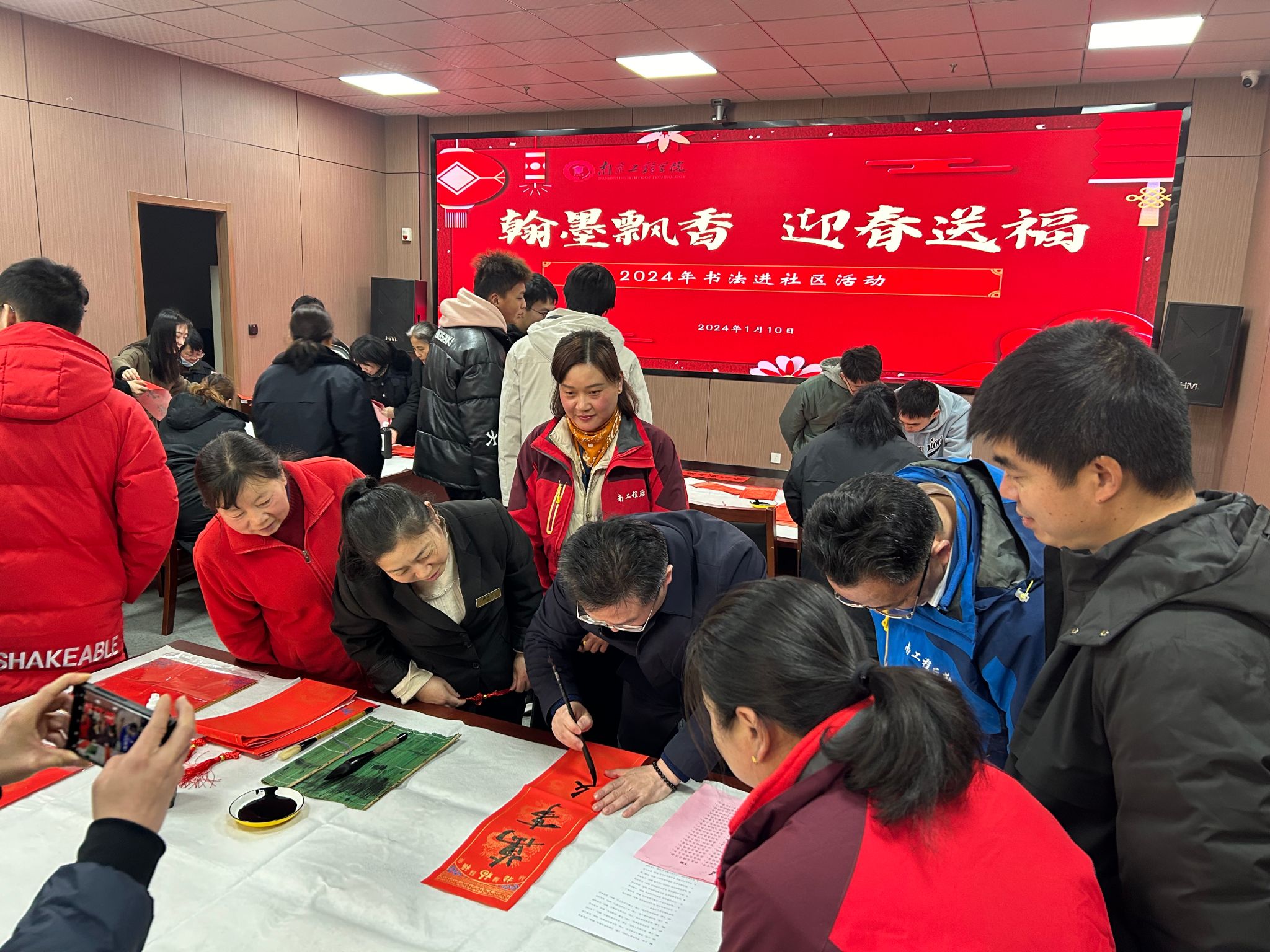 为弘扬中华优秀传统文化,展现书法的艺术魅力,1月10日,学生工作处在学生社区举办“翰墨飘香迎新春 笔墨浓情送祝福”迎春送福活动。