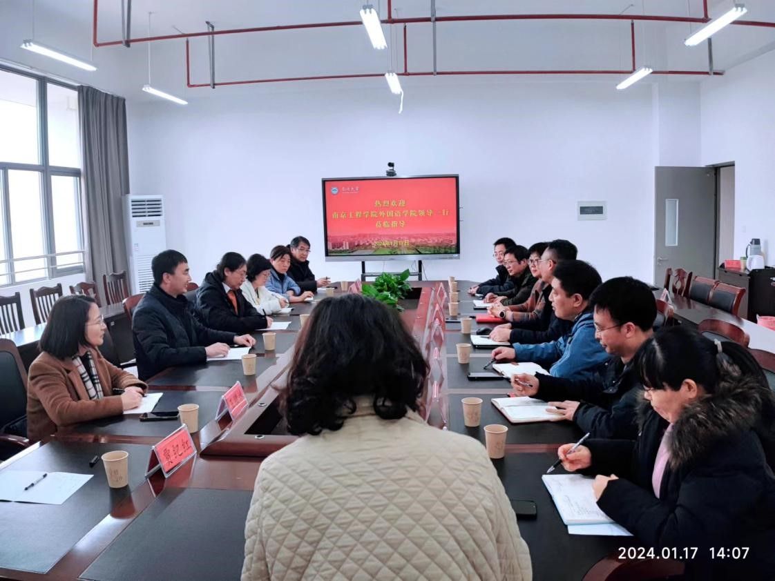 在南通大学外国语学院,党总支书记朱小娟、院长佘军、副院长吕雪峰以及各专业系部主任热情接待了徐艳一行。佘军介绍了学院基本情况,重点分享了学院专业特色、当前重点工作、以及取得的标志性成果。系部主任杨卫芳讲述了大学英语教学改革的发展历程;龙臻以日语系党支部建设为例,展示如何围绕课程思政开展支部教师与学生工作;曹雁华详述了翻译系的课程建设与中外合作办学特色。袁小明介绍了凯发k8官网外院的办学历史和特色、大学外语教学改革、课程设置、申硕工作等方面情况。双方就人才引进、科研交流、专业课程优化、实验室建设、学生实习实训、学生考研就业等工作展开交流。