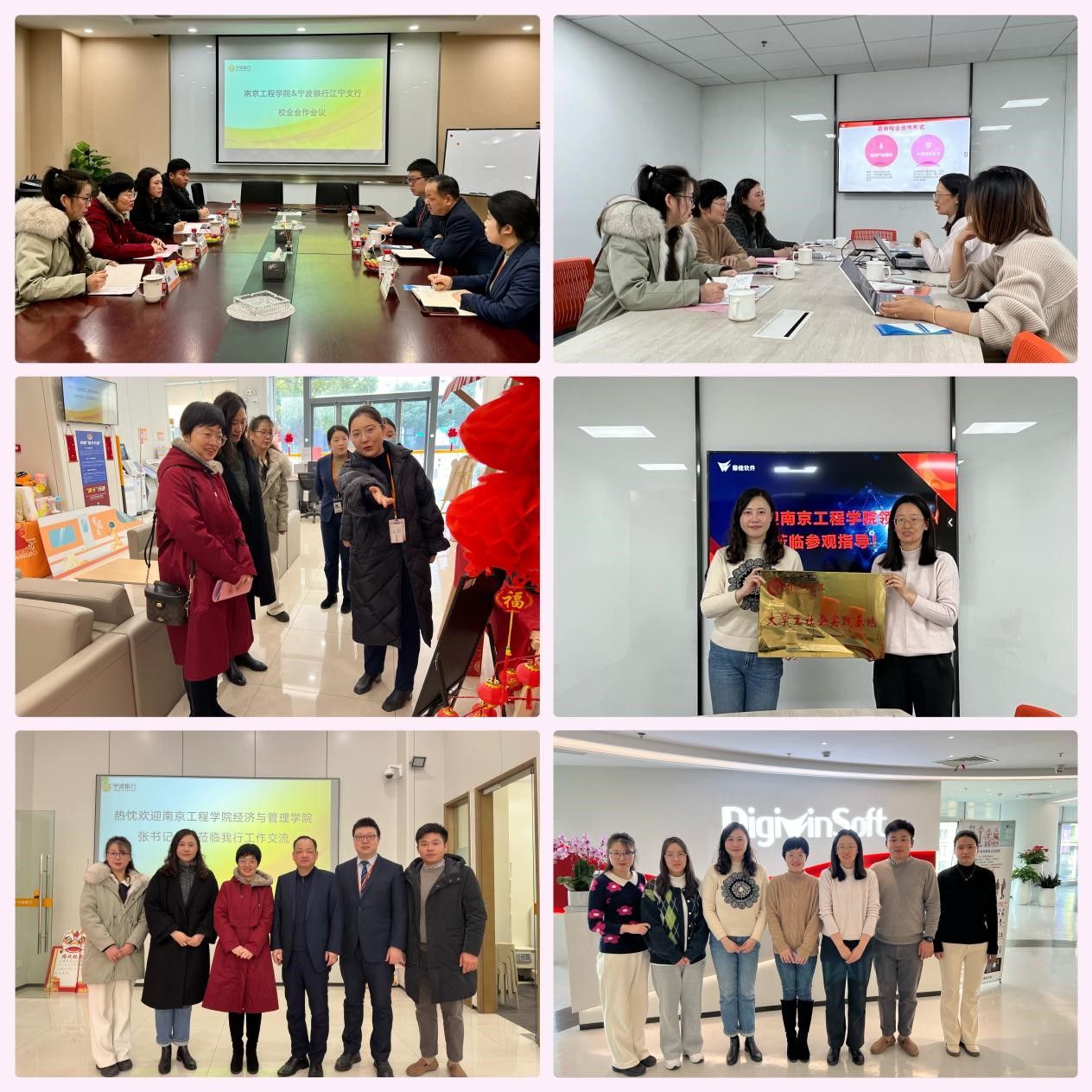 为贯彻落实凯发第四次党代会精神,进一步加强校企合作,积极拓展毕业生高质量就业岗位,1月25日,经济与管理学院党委书记张文莉带队赴宁波银行股份有限公司南京江宁支行、鼎捷软件股份有限公司走访调研,并签订校企合作协议。学院党委副书记、副院长徐娟,学工办教师代表参加调研。